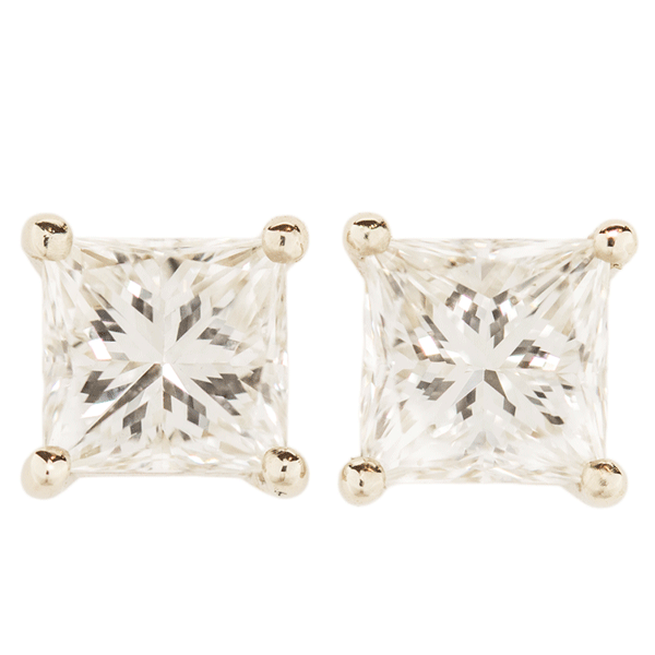 1.53ctw Princess Cut Diamond Stud Earrings
