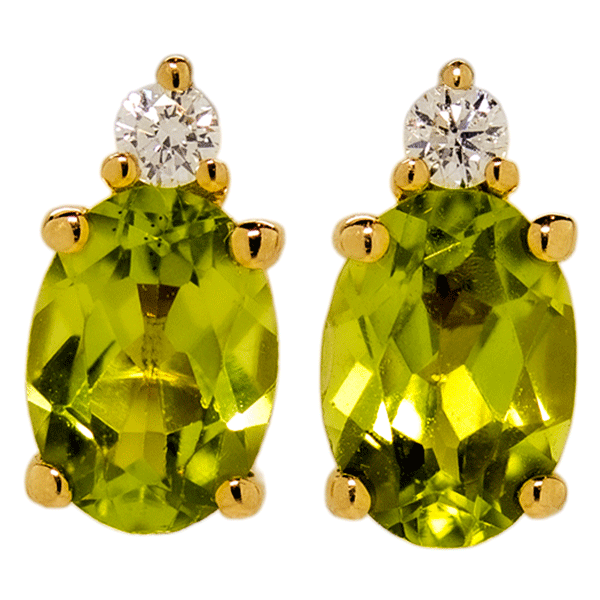 Oval Peridot .08ctw Diamond Studs