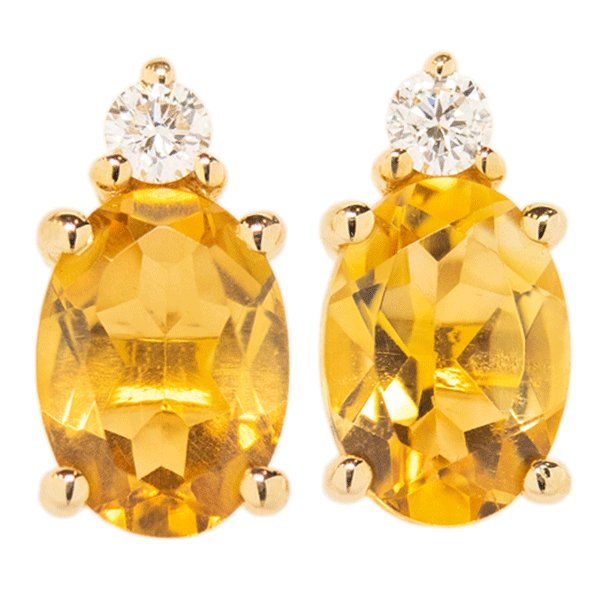14k Yellow Gold Oval Citrine and Diamond Stud Earrings