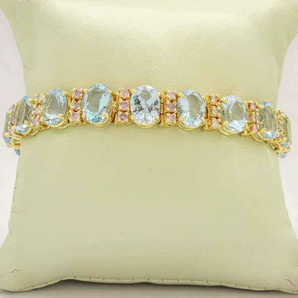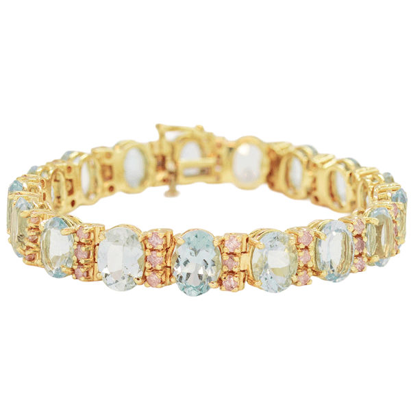 14k yellow gold Aquamarine and pink stone bracelet