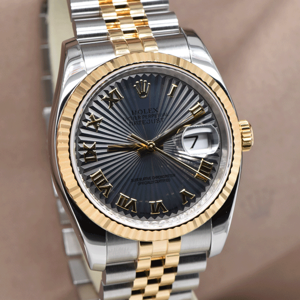 2004 Rolex Datejust 36mm 18K Yellow Gold & Steel Slate Sunbeam Dial 116233