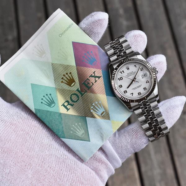 2006 Rolex Datejust 36mm Steel Jubilee White Arabic Dial 116234 with Papers