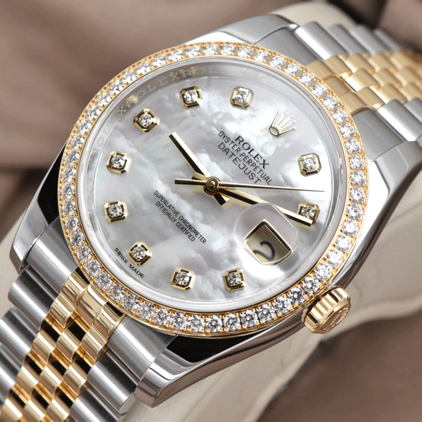 2017 Rolex Datejust 36mm 18K YG & Steel Factory Diamond MOP Dial 116243 FS