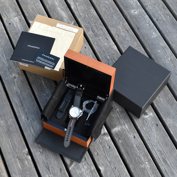 Band Material: Comes on the Panerai Luna Rosa Bi Material Strap with a Panerai Black Rubber Strap in The Box