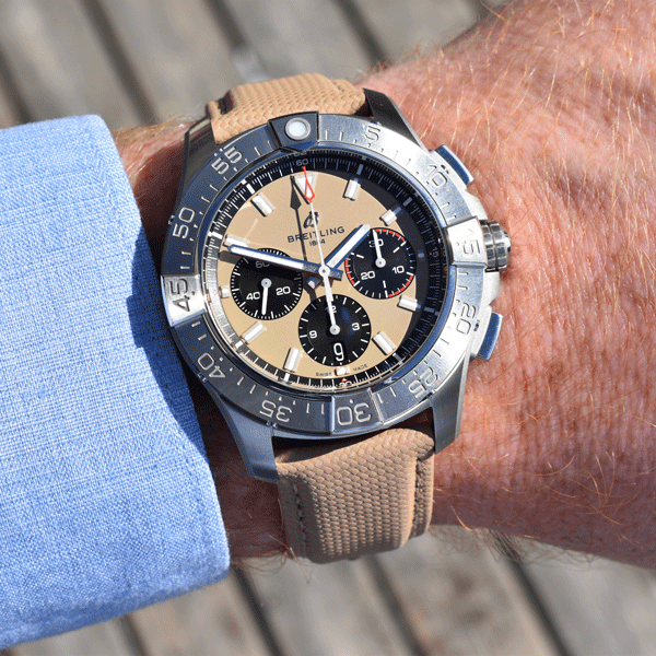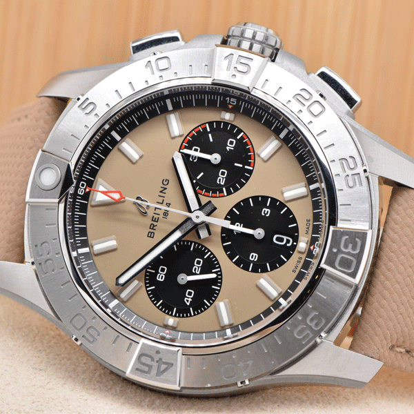 Band Material: Breitling Tan Canvas & Leather Strap with Stainless Steel Deployant Buckle