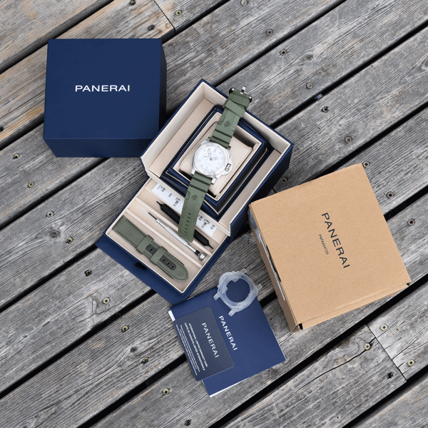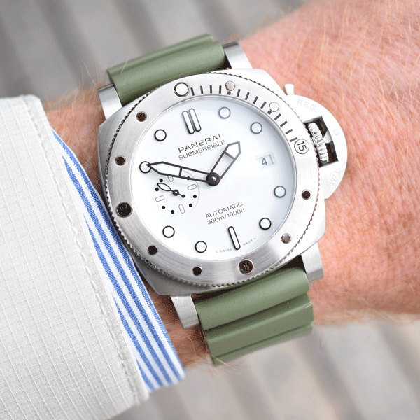 Band Material: Comes on the Panerai Green Rubber Strap. Also Comes with Panerai Green Canvas Strap