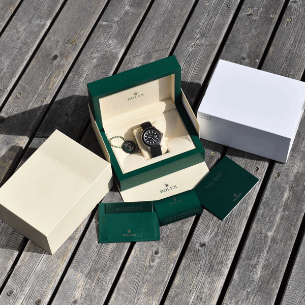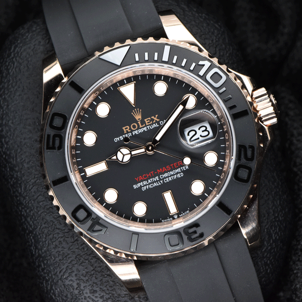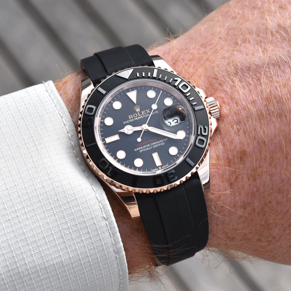 Band Material: Rolex Oysterflex Black Rubber Strap with 18K Everose Gold Deployant Buckle.