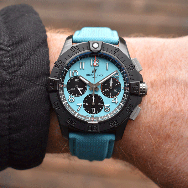 Band Material: Breitling Turquise Blue Canvas & Leather Strap with Titanium Deployant Buckle