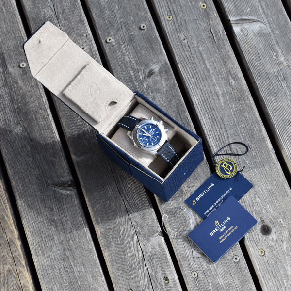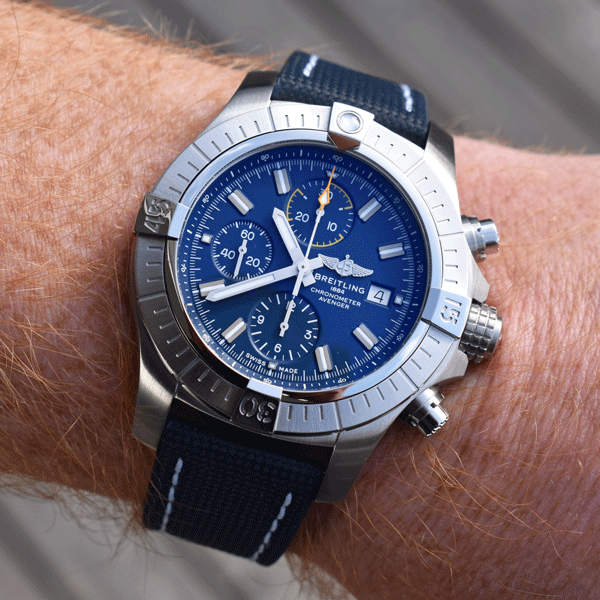 Band Material: Breitling Blue Canvas/Leather Strap with Steel Deployant