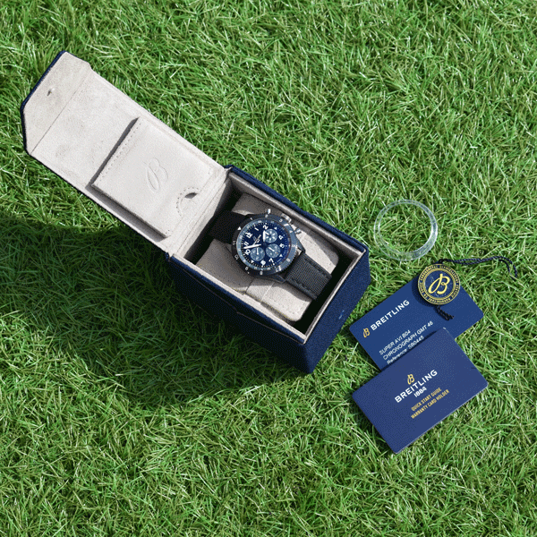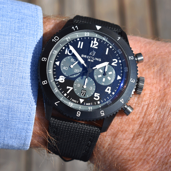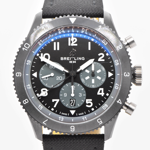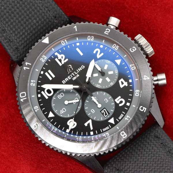 Band Material: Breitling Black Leather & Canvas Strap with Titanium Deployant Clasp