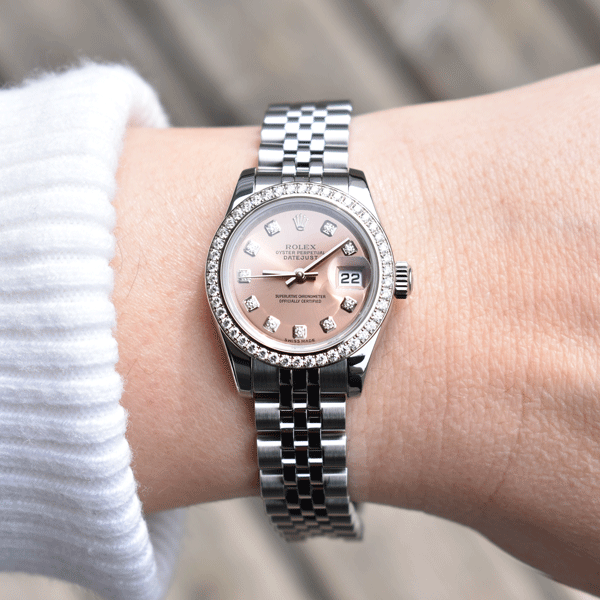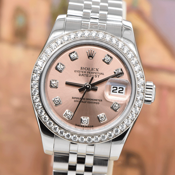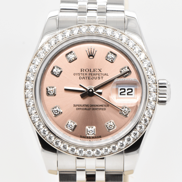 Ladies Rolex Datejust 26mm Steel Factory Diamond Bezel & Pink Dial 179384