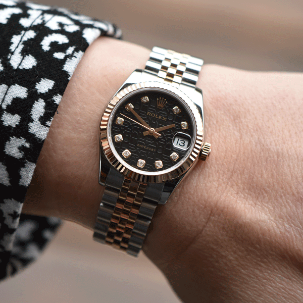 Midsize Rolex Datejust 31mm 18K Everose Gold TT Black Diamond Jubilee Dial 178271