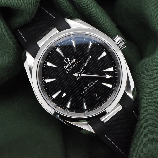 Band Material: Omega Black Rubber Strap with Steel Deployant Buckle