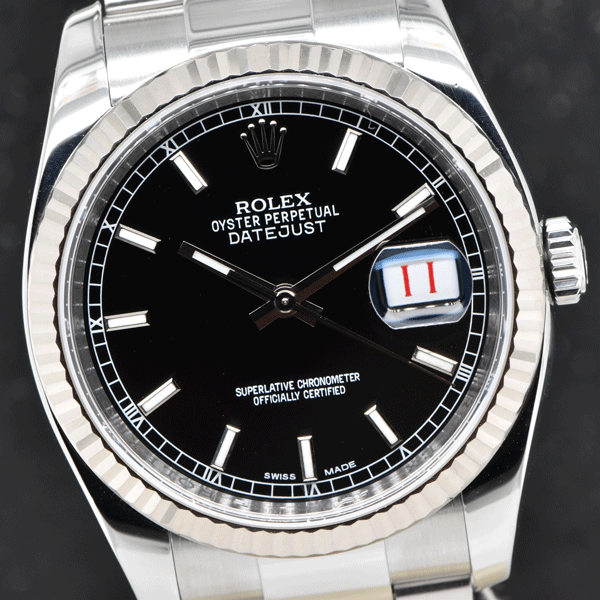 Rolex Datejust 36mm Stainless Steel Black Dial Roulette Date 116234 Watch