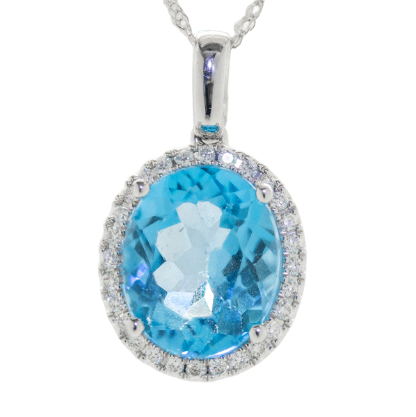 Brilliant Blue Topaz Pendant 14K White Gold And Diamonds