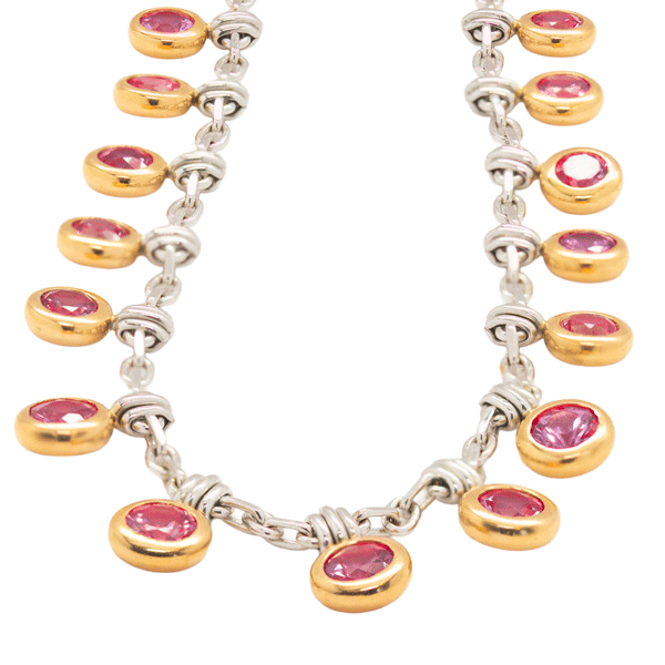 Pink Sapphire Necklace In 18K Two Tone Gold 10.75Ctw Sapphires