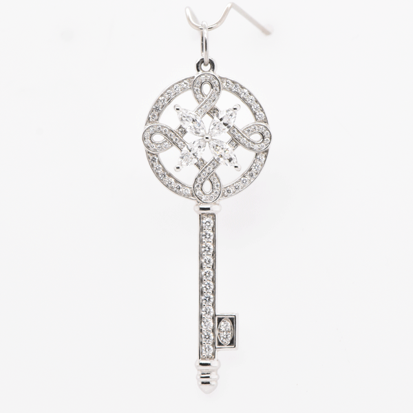 Tiffany & Co. Victoria 950 Platinum Marquise Diamond Key Pendant with Box