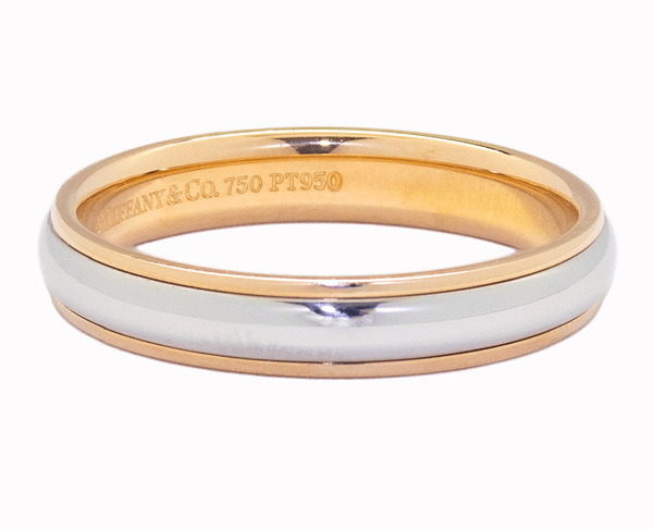 TIFFANY & Co. Classic Platinum 18K Rose Gold 4mm Lucida Wedding Band Ring Sz 9.5