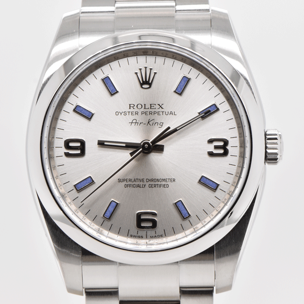 2010 Rolex Air-King 34mm Stainless Steel Silver 3 6 9 Dial 114200 Full Set