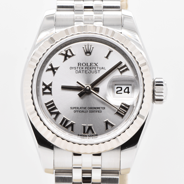 Ladies Rolex Datejust 26mm Stainless Steel Super Jubilee Silver Roman Dial 179174