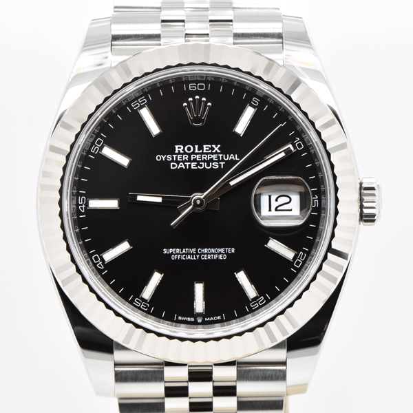 2020 Rolex Datejust 41 18K White Gold Fluted Bezel Steel Jubilee Black Dial 126334 FS
