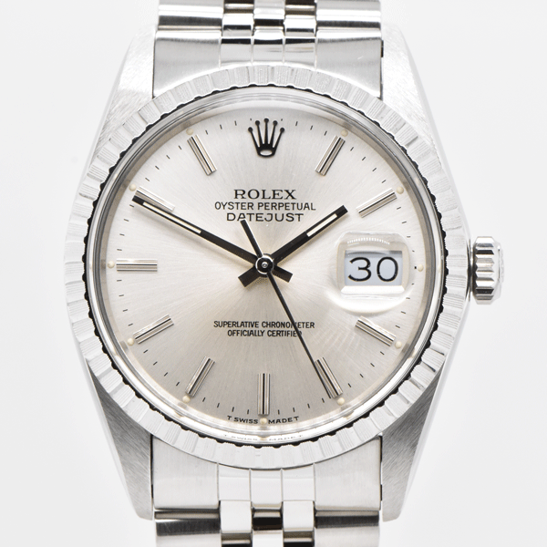 1987 Rolex Datejust 36mm Stainless Steel Silver Stick Dial 16030 with Service Card